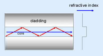 光纖由薄的低損耗玻璃線(xiàn)組成,其中心或核心區(qū)域的折射率略高于其周?chē)鷧^(qū)域或包層。